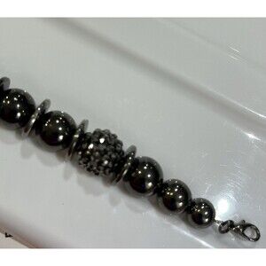 Gun Metal VTG Disco Ball W/ Flat Space Disc Bracelet 8in Rave Whimsygoth Fairy