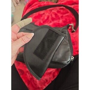 The Gun Tote'n Mama's Concealed Carry Shoulder Bag in black is a large handbag purse designed for women who want to carry their personal protection. Made with leather, this crossbody style handbag features a secure design for carrying a concealed weapon. This stylish and practical handbag is perfect for women who prioritize both fashion and safety in their daily lives. Never used