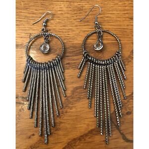 Gun-Metal Dangle Earrings Pierced Hook 3.5" Drop Dangle Movement