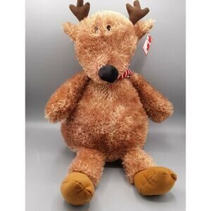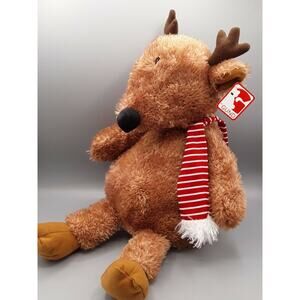 Gund Brown Reindeer Plush with Red Striped Scarf Small Eyes 15" H 4061608