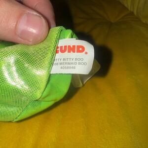 Super adorable Gund Itty Bitty Boo Mermaid Boo plush featuring a tiny pomeranian dog with a shiny green mermaid tail and pink fin. This collectible stuffed animal is New Without Tags (NWOT) or in Excellent Used Condition (EUC), soft, cuddly, and perfect for fans of Gund or unique plush toys. Approximately 6 inches long, made with quality polyester fibers. Ideal for collectors, gifts, or adding a splash of whimsy to any plush collection!