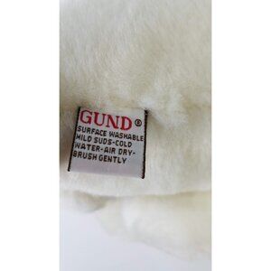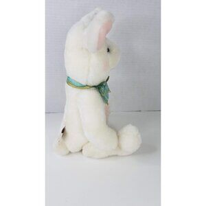 This adorable 11" white bunny rabbit plush by Gund is perfect for cuddling. It features a charming green and gold ribbon, making it an ideal gift for Easter or any special occasion. Preowned