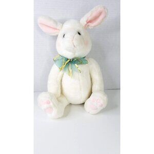 Gund Plush 11" Bunny Rabbit White Stuffed Animal Sitting Green Gold Ribbon
