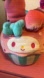 My Melody cupcake plush - this soft plush features My Melody as a sweet 8" cupcake with rainbow sprinkles, Hello Kitty sits in a green-and-white striped baking cup, wearing an electric-blue bow, Hello Kitty and Kuromi cupcake styles also available
