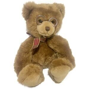 Gund Teddy Bear Plush Booker Brown 15" With Glasses and Bow Super Soft