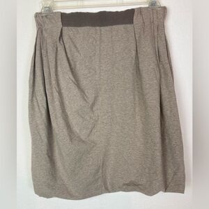 High quality wardrobe staple. Beautiful full cocoa brown knit bubble skirt (slightly puffs at bottom). Waistband and is dark brownn grosgrain ribbon w/ elastic side gores. Creates faux pleats more like smocked w/puff at bottom. Waist before stretch 15.5” and top to bottom 23”. Vintage no wear or flaws. Hits at knee approx. or just below on me.