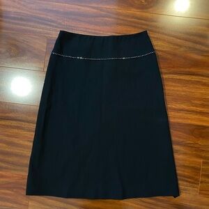 Gunex Made In Italy Black pencil Skirt 100% Virgin Wool. Beaded shiny Trim.