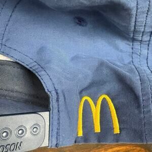 The other reason I suspect it may be a home job is due to the yellow arches McDonald’s logo being embroidered directly on top of the hat makers logo.