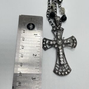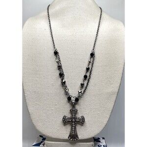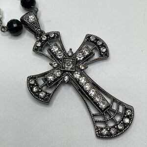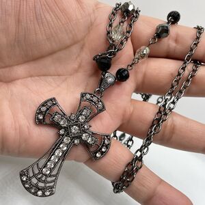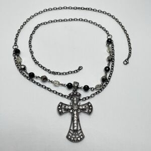 Gunmetal Black Layered Chain Large Rhinestone Cross Pendant Necklace Gothic