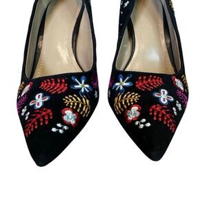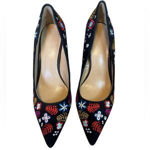 Gunmetal Black Suede Floral Embroidered Pointed Toe Heels