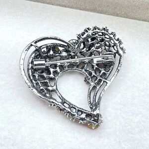 Gunmetal Gray with Ruby Pink Sapphire and Olivine Crystal Heart Pin Back Brooch