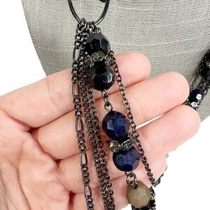 Gunmetal Multi-Layered Chain Acrylic Faceted Blue, Black & Brown Beaded Necklace
