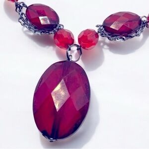Gunmetal Red Lucite Bead Statement Necklece Choker