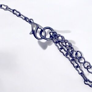 Nice condition, no makers marks, metal is gunmetal colored, about 16” with a 2” extender to make it 2” longer for an 18” necklace.