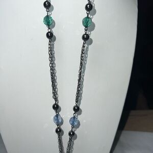 Gunmetal and Crystal Long Fringe Statement Necklace