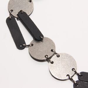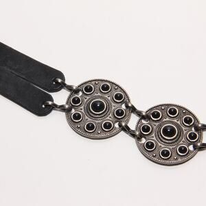 Gunmetal tone Leather and Medallion Belt Adjustable