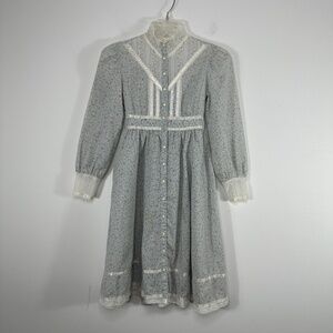 Gunne Sax By Jessica Girls Prairie Dress Blue Pink Ruffle Tie Back Juniors