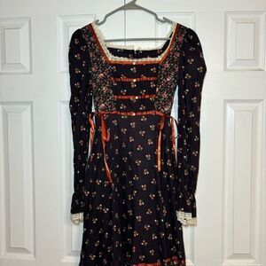 Gunne Sax Calico Dress Renaissance Fair Dress With Pockets Vintage 70s