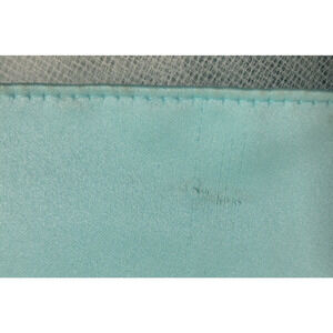 Preowned in good condition but there are many soiled or stained areas and it will need to be cleaned. The staining/ soiling is under arms inside and along edges as well as on the body of the dress in several areas.There are also areas where it has been snagged and the fabric surface scratched; It has a built in tulle, netting slip that is in good condition; The rhinestone type beads around the neckline are in good condition with none missing. There is no fabric tag.
