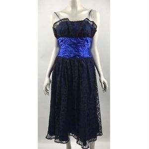 Gunne Sax Jessica McClintock Womens 5 Ball Gown Dress Cobalt Blue Satin Lace