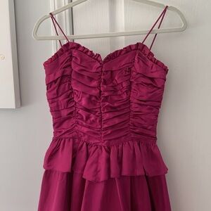 Gunne Sax Jessica McClintock XS satin cocktail dress romantic Fuchsia ruched