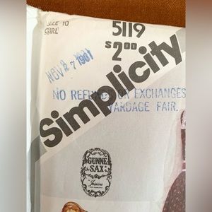 Unopened / like new with sewing instructions inside. Girls size 10 Gunne Sax pattern 5119