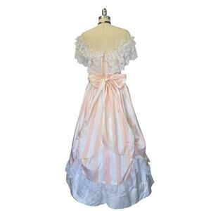 Gunne Sax Pink White Stripe Princess Dress Size S 9 Lace Satin Vintage 80s