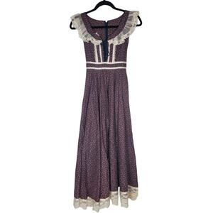 Gunne Sax Rare Prairie Boho Purple Floral Calico Dress Sz 5 vintage gold label