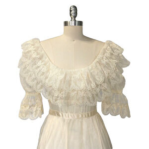 Gunne Sax Romantic Renaissance Bridal Dress Size S 7 Maxi Vintage 70s Lace