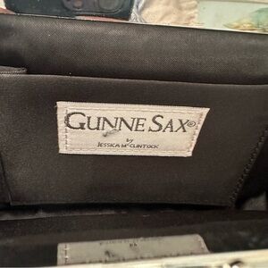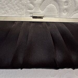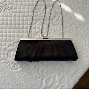 Gunne Sax Satin Clutch Purse Black Silver Chain Shoulder Crossbody 10” x 4.5”