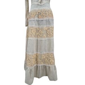 Gunne Sax Vintage 60s Off White Cream Lace Wedding Boho Corset Front Maxi Dress