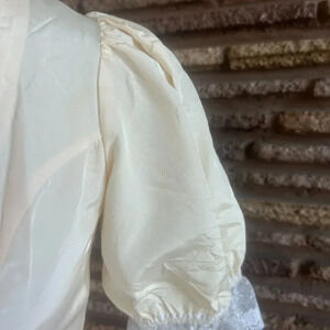 Vintage 70s cream ivory prairie dress with bead and lace trim detail.