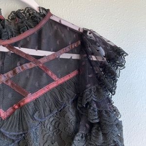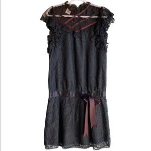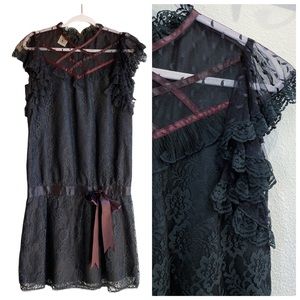 Gunne Sax Vintage Lace Bib Ruffle Drop Waist Romantic Victorian Dress