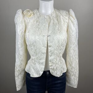 Gunne Sax Vintage Size 5 Ivory Lace Button Down Puff Sleeve Jacket Boho Cottage