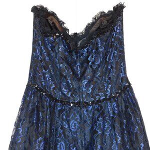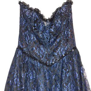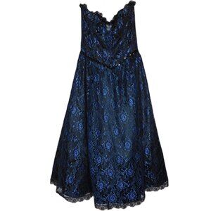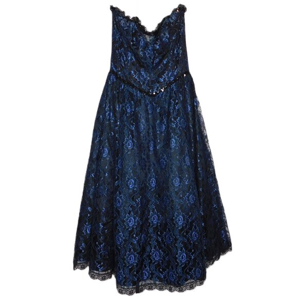 Gunne Sax Vintage Strapless Blue Black Rose Lace Dress | Whimsigoth | VGUC | M/9