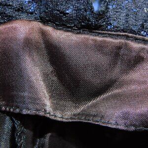 Gunne Sax by Jessica McClintock vintage 1980s black blue rose lace dress. Beautiful rose patterned lace throughout. Boning around the bustline. Neckline and waist have black sequins. Bottom is scalloped. Black crinoline and flounced slip. Zipper back. Perfect for that 80s, Y2K, whimsigoth, fairygoth, fairy and vintage stylings.