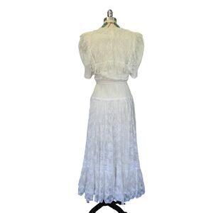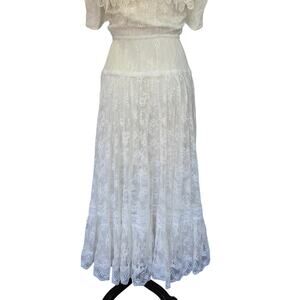 Gunne Sax White Lace Midi Dress Size 4 Vintage 80s Edwardian Romantic Wedding