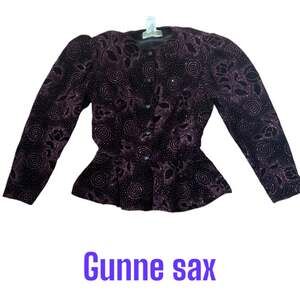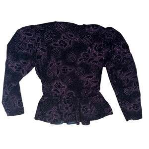 Gunne Sax black and purple velour blazer woman’s small peplum shoulder pads Vint