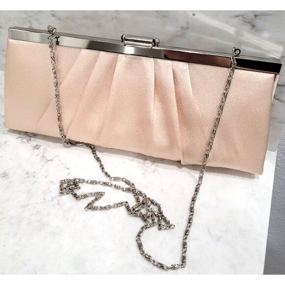 Gunne Sax by Jessica McClintock Champagne Clutch Purse with Chain Strap