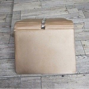 Vintage and beautiful!!! Pre-owned and in very good condition. Gunne Sax by Jessica McClintock. Champagne colored satin clutch/evening bag/handbag with rhinestone detail on the front flap. Also features pleated satin on flap with detachable silver-tone chain shoulder strap. Has a magnetic interior closure. Some minor signs of wear (dirt, dust, marks).