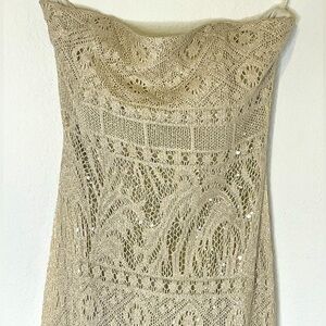 Gunne Sax dress maxi gown by Jessica Mclintock sz 7 knit gold sequin strapless