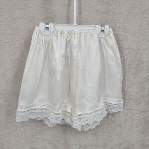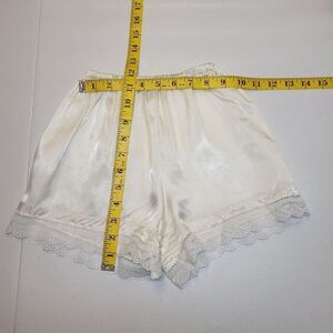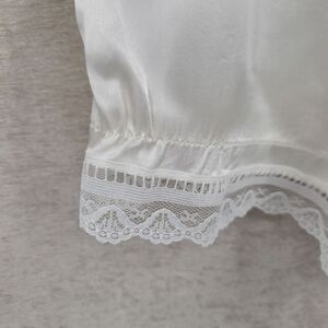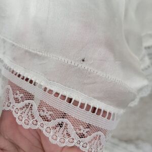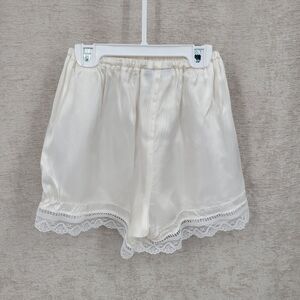Pre Loved - I replaced the elastic in the waistband of the bloomers so there are a few visible repairs from where I fed new elastic through. The elastic in the sleeves and leg openings isn't stretchy but the set is wearable. Small hole near leg opening on bloomers.