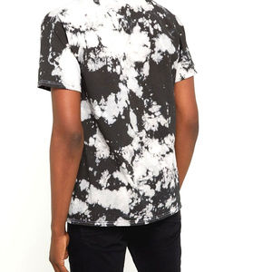 Black Bleached classic Guns N Roses t-shirt with Bullet design on the front. Bleach wash details are all over the front and back of the shirt. None of those shirts are the same and have different patterns of bleached details in light gray color. 100% Cotton.
