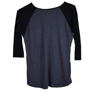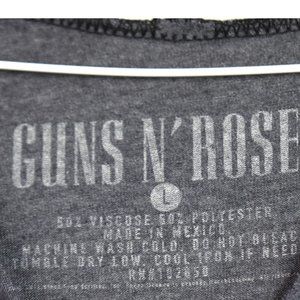 Guns N Roses Shirt L Womens Graphic Print Baseball Tee Gray 3/4 Sleeve V Neck