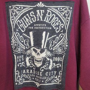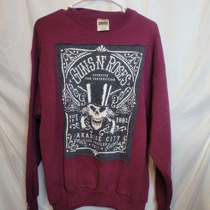 Guns N Roses Upcycled Vintage Sweatshirt Pullover Adult Size Large Burgundy