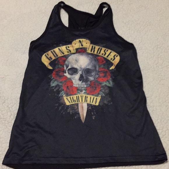 Very cool Guns and Roses tank top goes with any and everything leggings jeans skirts or shorts in excellent used condition don’t like the price make me an offer 💕💕💕