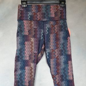 NWT A Pair of Active Full Length Leggings in a Multi Color Chevron Print from Guru. The First Stock Photo is the Same Look and Print, but made from a Different Designer. It has the Same Characteristics like the Thick Quality Fabric, the Contrast Blue Stitching, the Reinforced Gusset, and High-Rise Wide Waistband. It Also has an Inside Waistband Pouch Pocket. I'm Not Sure if there's Any Other of the Same Characteristics for I Couldn't find this Exact Pant Online.