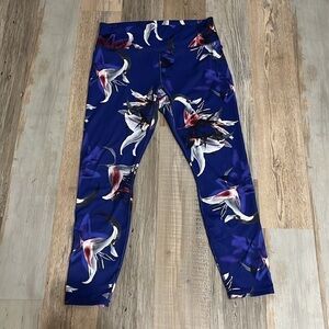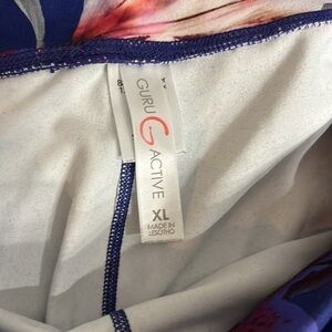 Guru Active Womens Leggings Pants Blue Floral Print Stretch Elastic Waist Sz XL