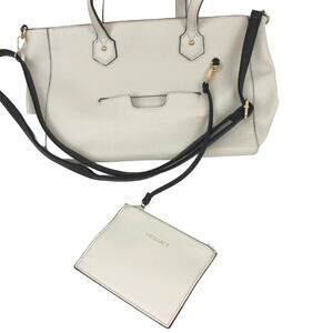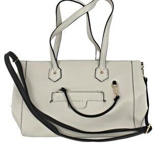 Gussaci Women's Large Tote Shoulder Handbag Minimalist Neutral Cream Black Trim