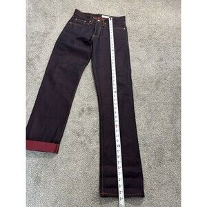 Crisp raw denim. Too small for me. Tag says 32 but waist measures exactly 30 inches.